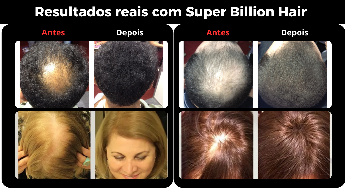 O Super Billion Hair é um complexo orgânico de fibras de queratina em pó, composto por 15 aminoácidos que aderem eletrostaticamente aos fios de cabelos já existentes, simulando as características do cabelo humano, deixando o cabeloso volumoso de forma instantânea.