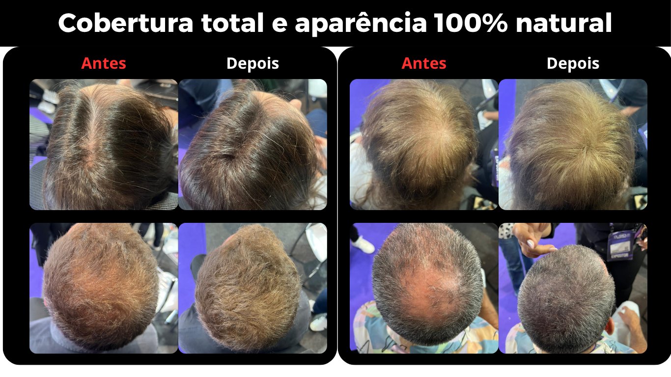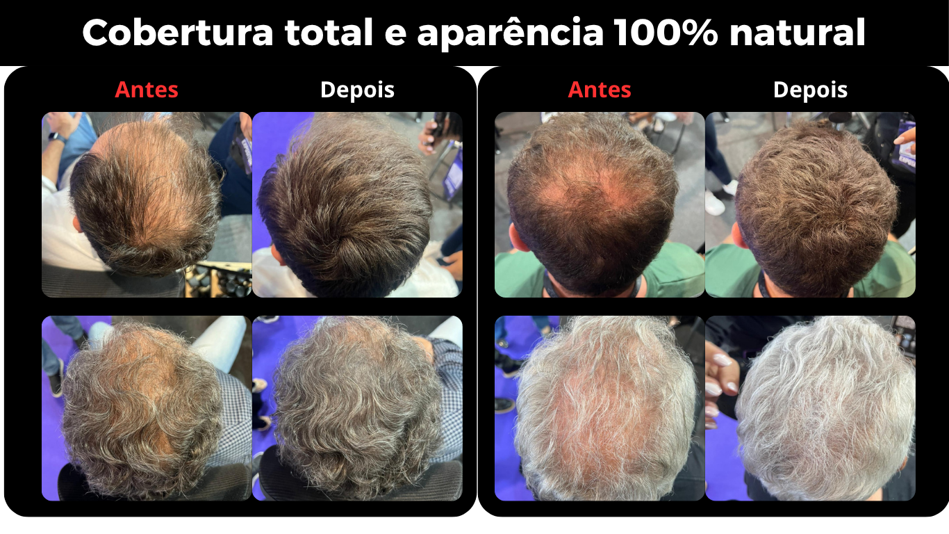A fibra de queratina em pó Super Billion Hair é removida somente durante o banho com shampoo, após massagear o couro cabeludo.
